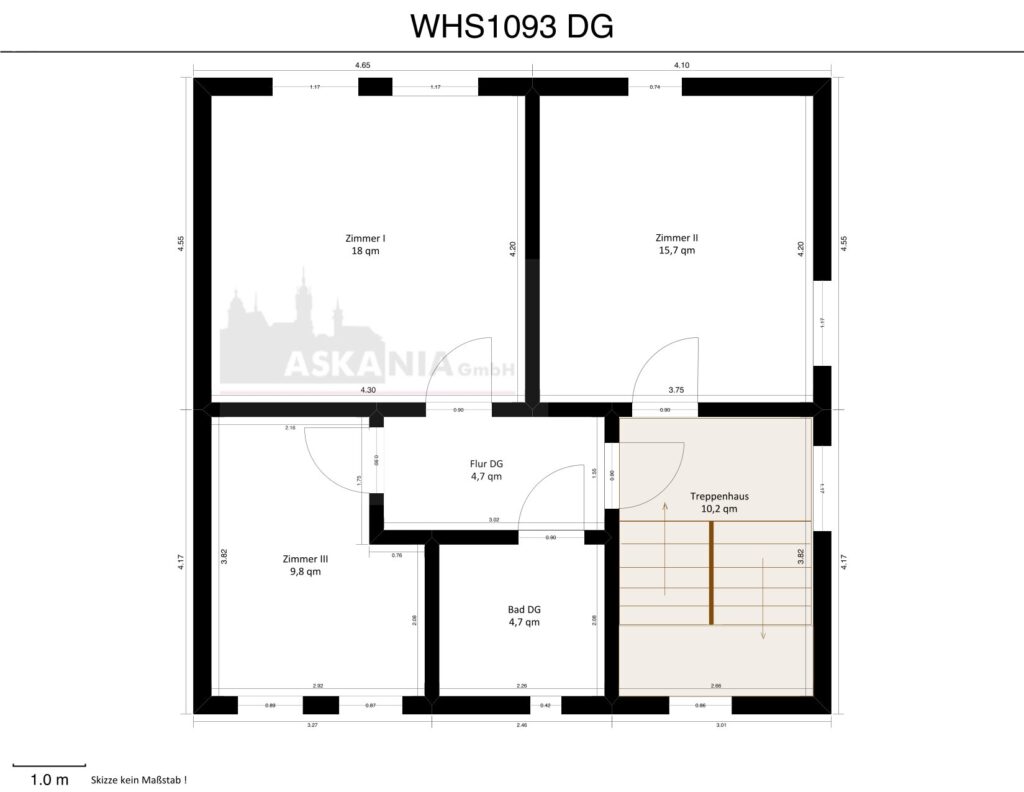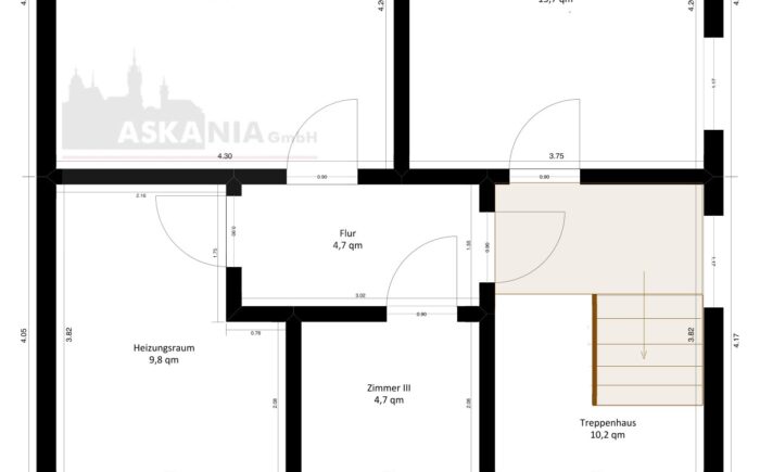 : 3 Wohnräume, Bad (mit Dusche), Flur