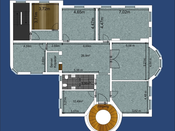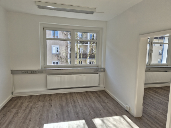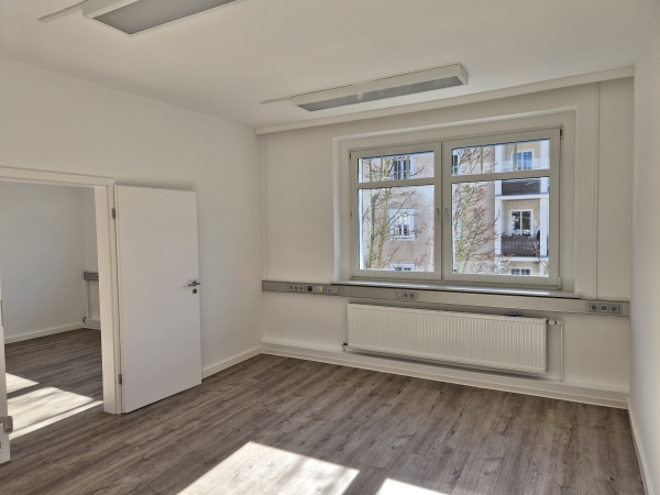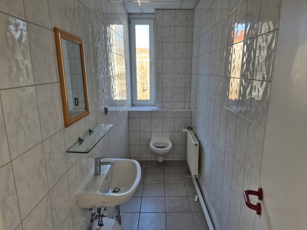 Helle zentral gelegene Büroräume mit Küche, Kunden- WC und Stellplätzen im 2. Obergeschoss.